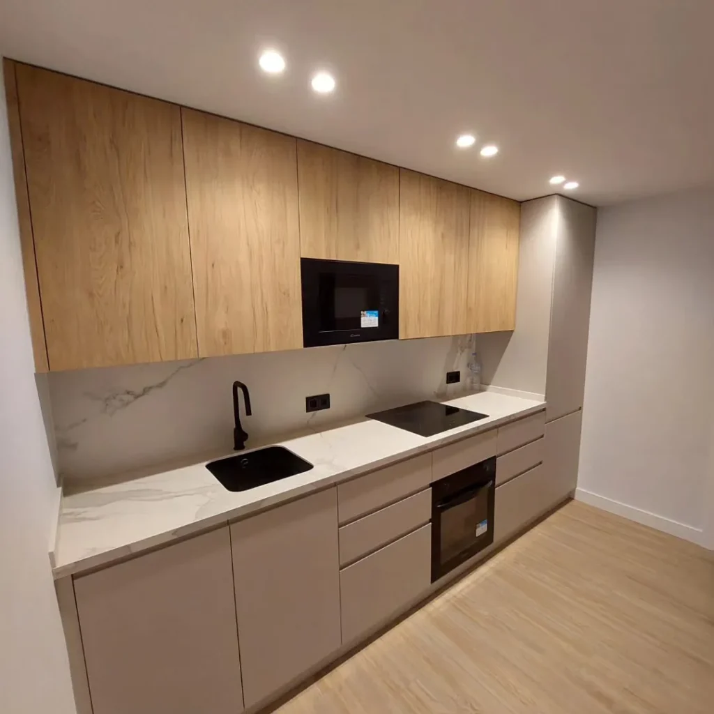 Trabajamos distintas opciones de acabado para adaptar la cocina al estilo visual del proyecto y al nivel de uso previsto.